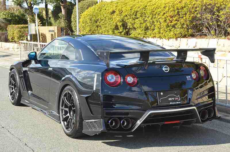 The car we're introducing is based on the R35 GT-R MY14 Black Edition and its exterior features a wide-body full aero kit for a powerful MY20 look.